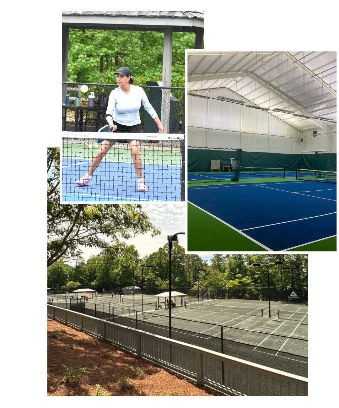 The Racquet Club has eight outdoor hard couts with six Har-Tru clay courts, two hard courts, four lighted pickleball courts, and two indoor tennis courts. Racquetball is also available at the Wellness Center. Equipment may be rented or purchased in these areas from the fully stocked Pro Shop!